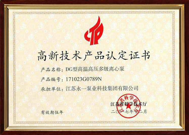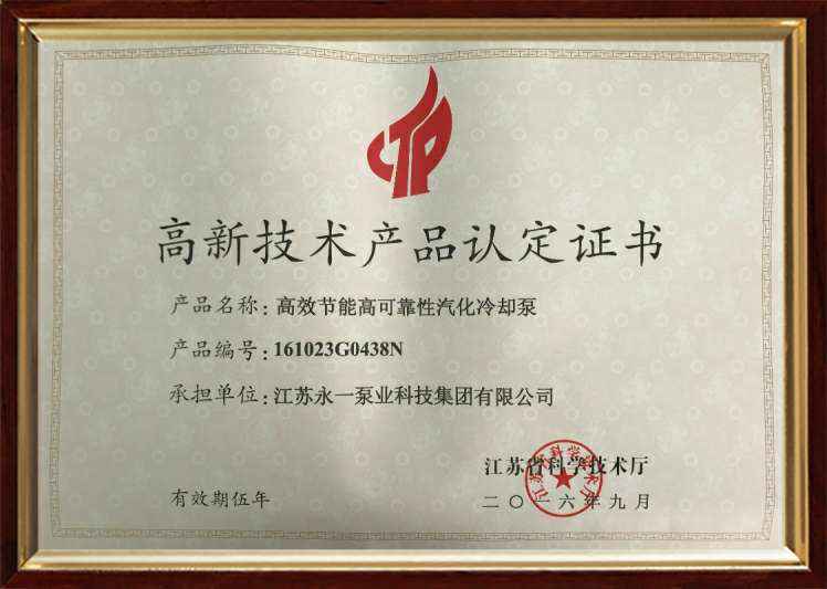 高新技术产品认定证书